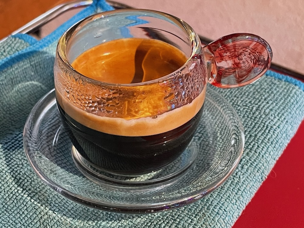 Dann ein Doppio, eine Hälfte als capp für meine Holde, eine Hälfte für mich als espr: dieser wieder so perfekt wie letzte Nacht, und keinen Hauch von Säurenoten… ++